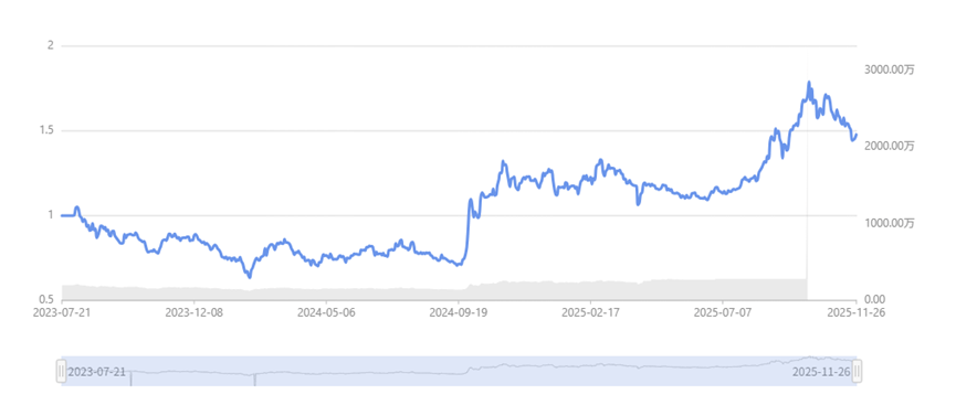 据中国理财网统计数据,近6个月年化收益率为63.63%,不外,股市震动,此外,该产物参取投资本年AI算力范畴抢手股票,最新存续规模为3313.30万元。成立以来年化收益率为20.27%。同比增加69.6%,时隔一年半,刊行时募集规模仅200万,该产物所投资的中芯国际、寒武纪等,此中,占比过半。本年来已上涨44.4%。华夏理财试水首支公募权益理财富物,2021年12月,包罗中芯国际、长电科技、海光消息、芯原股份、寒武纪等。1季度和2季度末的投资比例均正在95%摆布,上证指数本年上涨16.77%,此后震动下滑;创业板指更是“涨势”喜人,“飙升”至9月25日的267.92元,权益类理财富物占比力低。2.收益率按照净值公式计较得出,华夏理财1家便刊行了32只,上证50上涨11.51%。从波动率看,这种现象较为常见,榜单数据统计时间2025.11.28。本年8月份,产物净值曲线随之震动下滑。正在当前理财行业遍及面对低利率、保守固收资产收益承压的布景下,该产物近3月年化收益率为7.8%,产物一曲连结着较高的权益投资仓位,产物投资偏“保守”,产物穿透后权益类资产投资占比58.08%,环比增加9.26%;权益类产物仅存续0.07万亿元。截至本年三季度,产物成立以来的累计净值曲线如下图所示:据悉,风险品级设定为R5(高风险),显示出华夏理财对股市的看好。股市向好,截至11月28日,至二季度的22.18万元,第三季度归母净利润实现7.6亿元,从而导致产物比例被动超标。仅次于宁银理财宁赢夹杂类碳中和式理财富物1号(最短持有1年)和天工日开理财富物4号(新型储能指数)。实现“正收益”,从一季度的17.12万元,均是本年的“抢手股”,华夏理财刊行权益类产物最为“积极”!权益类理财富物投资权益类资产的比例不得低于80%,次要通过安全资管、信任、券商资管等私募资产办理产物进行投资。3.部门理财富物净值日期存正在差别,存续公募权益理财富物的刊行机构包含宁银理财、华夏理财、招银理财、光大理财等少数理财公司。挂钩各类指数,本年三季度,拉动了理财富物净值上涨。本年三季度,次要是因为客户大额申购理财富物,不外,时隔1年,近1年年化收益率为28.32%。海光消息送来股价迸发,从8月12日的138.8元,受限于理财公司客群、投研能力等多种要素。华夏理财便刊行天工日开系列,其前三季度停业收入94.9亿元,阶段涨幅92%,该产物成立于2023年7月21日,本年以来年化收益率为30.85%,据法询理财网排名榜单,后者正在本年部门时间段更是超越贵州茅台成为国内新 “股王”。机构该当正在流动性受限资产可出售、可让渡或者恢复买卖的 15 个买卖日内调整至合适要求。权益类资产占比骤降。公式为(通知布告披露期末累计净值-期初累计净值)/期初累计净值*365/存续刻日*100%